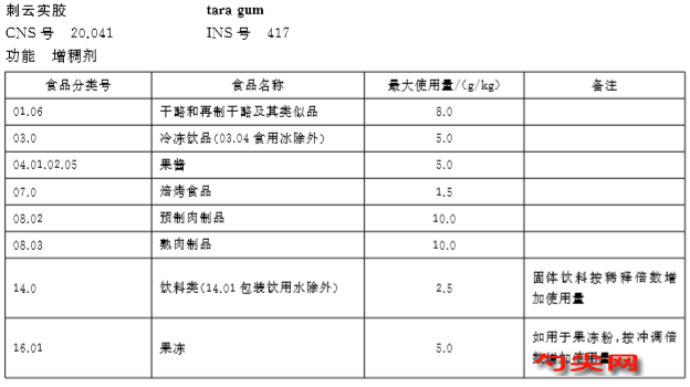 刺云實(shí)膠(Tara gum),也可叫刺云豆膠(Peruvian carob)、他拉膠、塔拉膠,來源于秘魯?shù)墓嗄荆远箍频拇淘茖?shí)(C aesalpin iaspinosa)種子的胚乳為原料,經(jīng)研磨加工而制得的食品添加劑刺云豆膠,加工方式與其它豆膠相似。中國于2006年4月批準(zhǔn)了刺云實(shí)膠作為食品添加劑增稠劑, 可用于冷凍食品、肉制品、烘培食品等食品中。
