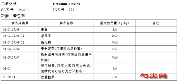 美國食品藥品管理局規(guī)定二氧化鈦可以作為所有的食品白色素,最大的使用量為1g/kg Sec. 73.575二氧化鈦。色素添加劑二氧化鈦可以安全用于一般著色食品中,服從下列規(guī)定: