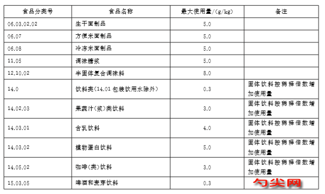 我國《食品添加劑使用衛(wèi)生標(biāo)準(zhǔn)》(GB2760-2011)規(guī)定:海藻酸丙二醇酯的最大使用量,乳脂香精為2g/kg;冰淇淋為lg/kg;啤酒、飲料為0.3g/kg;乳制品、果汁、乳粉為3g/kg;膠姆糖、巧克力、煉乳、氫化植物油、沙司、豆奶飲料為5g/kg。FAO/WHO(1994)規(guī)定:青刀豆、黃刀豆、甜玉米、蘑菇、蘆筍、青豌豆等罐頭為10g/kg(單用或合用總量,以下相同);干酪為8g/kg;乳脂干酪為5g/kg;冷飲為l0g/kg;番茄醬為2~5g/kg;大豆飲料為1~2g/kg;酸黃瓜為5g/kg 。