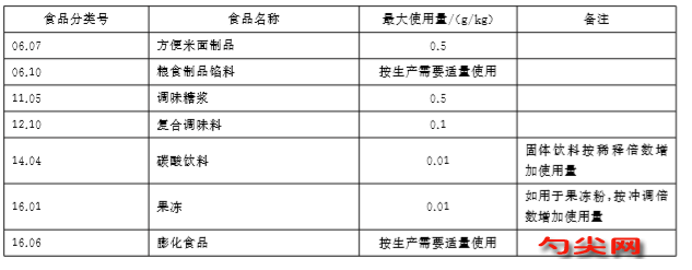 姜黃素是聯合國糧農組織食品法典委員會批準的食品添加劑(FAO/WHO-1995),是我國《食品添加劑使用衛生標準》中最早頒布的,允許在食品中使用的九種天然色素之一。新頒布的《食品添加劑使用標準》(GB2760-2011)規定,冷凍飲品,可可制品、巧克力和巧克力制品以及糖果,膠基糖果,裝飾糖果、頂飾和甜汁,面糊、裹粉和煎炸粉,方便米面制品,調味糖漿,復合調味料,碳酸飲料和果凍中姜黃素的最大使用量分別為0.15、0.01、0.7、0.5、0.3、0.5、0.5、0.1、0.01、0.01 g/kg,人造黃油及其類似制品、熟制堅果與籽類、糧食制品餡料和膨化食品中可按生產需要適量使用。