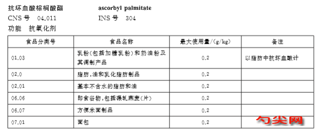 食品添加劑指定標準 食品添加劑 抗壞血酸棕櫚酸酯