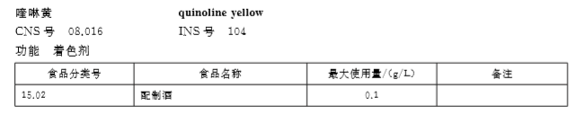衛生部公告2011年第19號(2011-7-20)規定喹啉黃如下。