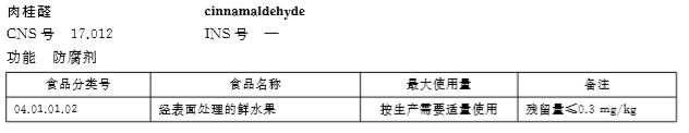 肉桂醛為GB2076-2011規(guī)定的允許使用的食品用合成香料,可用于制備肉類、調(diào)味品、口腔護(hù)理用品、口香糖、糖果用香精 。
