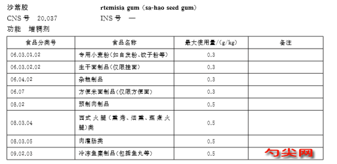 國內用白沙蒿研制了Q86面條添加劑,增強了面筋結合力,改善面團流變學特性,使面團拉伸強度提高1~2倍,面團穩定時間加長,衰落值減少,延伸性降低,能值顯著增大。用于掛面生產試驗,掛架斷條率從8%下降到5%以下。專利“沙蒿籽作為食品添加劑的制造方法”,專利號CN85108918A。此專利解決了沙蒿籽粉碎時的粘結問題,采用改良劑抑制加熱變色反應和褐變,改變膠溶特性,制得工藝性狀優良的沙蒿粉和沙蒿膠,用于做面包、面條、粉條、果醬、蛋糕、罐頭、糖果等食品的添加劑,使用效果十分理想。具體應用于: