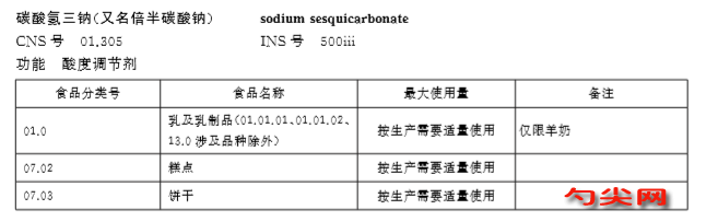 碳酸氫三鈉的使用范圍及使用量由我國《食品添加劑使用衛生標準》(GB 2920-1996)規定:可按生產需適量用餅干、糕點、羊奶、乳制品等。