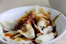鐘水餃絕在選料,妙在調味。紅油選用紅辣椒面,用菜油煉制而成;醬油采用特制的醬油,再加以蒜泥汁水、芝麻油等多種調料,巧配妙合而成。香味濃郁的調料,紅亮色澤,與飽滿餡心的清鮮味相配搭,形成多滋多味的風格。
