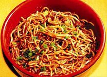 熱干面與山西刀削面、兩廣伊府面、四川擔擔面、北方炸醬面并稱為我國五大名面。它既不同于涼面,又不同于湯面,制作的方法是先把面條基本煮熟,然后撈起來拌油攤涼,吃時再在開水內滾燙幾下,瀝水,加上芝麻醬、蝦米、蔥花、醬蘿卜丁、小麻油和醋等佐料拌勻。上桌時香氣撲鼻,耐嚼有味。