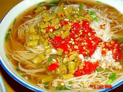 米粉,榨菜絲,肉絲,鹽,味精,醬油,雜骨湯,干椒粉,蔥花,熟豬油 。