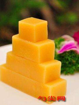 鄭州豌豆黃是一道以黃食糖、柿餅片、豌豆黃等為主要食材制作的美食。
