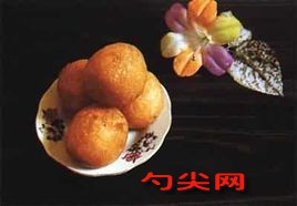炸棗與炸狗仔不是節(jié)日也能一試你的烹飪手藝。利用雙休日,你買250克糯米粉,一斤或八大兩番薯(蒸熟去皮),白糖半斤,和熟番薯揉成粉團(tuán),以可塑捏成形為準(zhǔn)(太硬太軟可用水或粉摻和),即可憑你高興捏成十二生肖或你想像的形狀,放入五成熱的油鍋中,待浮起來(lái)時(shí)用竹筷(不可用塑料或帶漆的)輕翻,炸至表面呈金黃色時(shí)撈起,稍涼即可大嚼了。倘若要做內(nèi)餡,可買花生仁炒熟去膜壓碎,加上切碎的冬瓜糖、白糖適量、芝麻、拌點(diǎn)香油,不但"味道好極了",還有"甲天下"滋味。