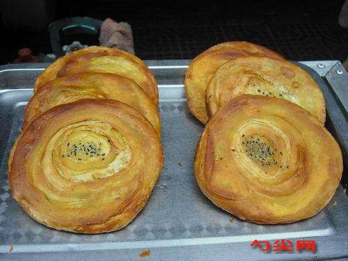 干拌均勻和面發(fā)酵,將發(fā)酵好的面團(tuán)揉勻,做成比烙饃的鍋底略小的圓餅,厚約3-4厘米,放進(jìn)燒熱的鍋里,并用筷子在上面戳幾個(gè)小眼,使餅受熱后空氣從中溢出。蓋上鍋蓋,用文火烤烙。待挨鍋底的一面烙成桔黃色時(shí)翻過繼續(xù)烙,約40分鐘即可烙成外皮脆酥、里面松軟的鍋盔。一般用做飯的鐵鍋。可用小麥面、青稞面、豌豆、包谷面。也可做好卷了香豆粉、紅曲粉的,還可在面中摻進(jìn)青油烙成油鍋盔。