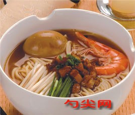 擔仔面又有人叫"肉臊面",肉臊其實是鹵肉的一種,當前成為了臺灣南部的一種經典小吃。臺灣的鹵味、特別是鹵肉,是揚名海外的,肉臊是臺灣的當地方言,意思是剁碎或切碎的肉,用較甜的鹵汁鹵過,再切丁、加上新鮮蒜瓣一起炒,非常的香。炒好以后加入面中,就是擔仔面了。特色:特點便是里面的肉臊是用木炭火烤的。按照當前的做法,擔仔面里面一般會加一只蝦進去,而肉臊是用鹵肉來爆炒而來。 原料:肉臊(純瘦肉的鹵肉),蒜,油面.值得注意的是,擔仔面的面又不是一般的面條,而是一種叫做"油面"的面條,面粉中加入筋力源M制作而成,這種圓形的面條口感爽滑彈牙,相互不粘連,很能與肉臊的口感相搭配。
