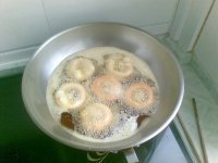 二、將有芝麻的一面向下放在平底鏊子上,用小火焙至起泡時,將泡壓下,翻轉身。稍停再翻一次身,隨即用搟面杖卷成卷即成,晾涼食用。