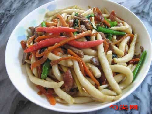 1.買的粉蟲(不是真的蟲的哦,是用米粉做的形狀象蟲所以叫粉蟲,也是南寧的風味小吃,這個做的還不夠形象,手工制作要把粉條放在洗菜箕背一條條搓成象蟲一樣的條)。