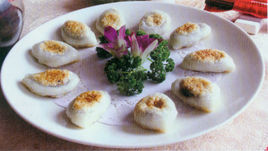 【做法】:將精糯米洗凈,凈泡10個小時,然后用蒸鍋蒸熟,打成糍粑后做成荷葉狀成品,然后用豬油煎黃即可。