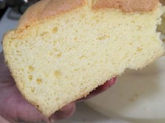 打發蛋清時,要低速打發至蛋白發軟,提起有小尖角,避免過度打發導致蛋糕口感過硬。先將三分之一的蛋白與蛋黃糊混合,再倒入剩下的蛋白,混合時要輕柔且快速,避免消泡。模具內要鋪上吸油紙,以便脫模。倒入蛋糕糊后,要震出大氣泡,使蛋糕更加細膩。烤盤中要加入2厘米的熱水,將模具放入烤盤中,這樣可以保持蛋糕的濕潤度,使口感更加松軟。烤箱要提前上下火160度預熱,烘烤時間為40分鐘,期間注意觀察蛋糕上色情況,避免烤焦。烤好后要立即取出蛋糕,放涼后脫模切塊。脫模時要輕柔,避免破壞蛋糕形狀。