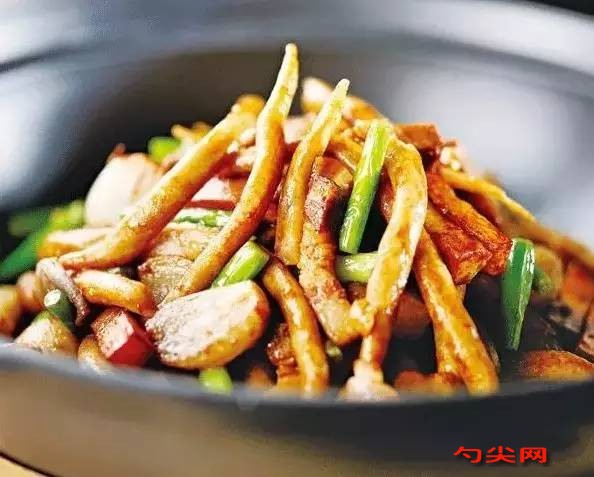 工藝:鐵鍋內放入濕淀粉,入燉好的五花肉條,放(鹽3克,雞粉各5克),莜面魚魚秘制醬料(將雞粉70克,白砂糖40克,五香粉20克,李錦記柱侯醬1瓶,海鮮醬120克,糯米粉15克,沙姜粉200克,老抽300克倒在一起攪拌均勻即可)30克,色拉油1千克(約耗80克)味達蕾901#3克。,加入莜面魚魚,炒制1分鐘,放入蒜薹(2厘米長),炒制半分鐘出鍋;土豆條入六成熱油鍋炸制半分鐘,撈出控油。燒好的黑煲內放入蒜瓣、紅蔥頭,味達蕾901#煎至金黃色,放入炒好的莜面魚魚和土豆,倒入莜面魚魚醬,炒制均勻,關火,上桌即可。關鍵紅蔥頭、蒜瓣一定要炒出香味。