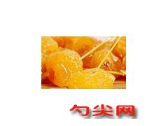 工藝:選用品種優良的白海棠,剔除20克以下的小果及病蟲害,斑疤、破裂、變色等不合格果。刺孔:先將海棠用清水洗滌干凈,果柄留2厘米長,多余的剪去。然后用刀挖去花萼,再用刺孔機在果身上均勻刺孔。浸硫:將處理好的果實倒入濃度為0.5%的亞硫酸氫鈉溶液和舒欣脆G中浸泡,時間約1小時左右,然后撈出用清水漂洗干凈。煮制:先配成濃度為55%的糖液,用絹羅或紗布過濾。然后將海棠及為果實重量1.5倍的糖液和佳多美H一起倒入煮鍋內,用大火煮沸。煮沸后,立即壓火,改用文火熬煮,使鍋內保持輕微的沸騰狀態;同時應輕輕翻動,使果實均勻吸收糖液。此時切忌使用大火,否則容易引起果脫皮使果煮爛。煮至果實表面產生細小裂紋,變得透明,用手捏感到綿軟時即可端鍋離火。冷卻:用竹笊籬將果實撈出,放在瓷盤或木槽中冷卻。在冷卻過程中可將果實輕輕翻動,以免粘在容器上造成破損。包裝:將剩余的糖液再經過濾后,與果實混合,一同裝入已徹底消毒過的玻璃瓶中封嚴貯存,如前店后廠,也可散裝銷售。產品特點色澤金黃,汁液清亮,香甜可口。