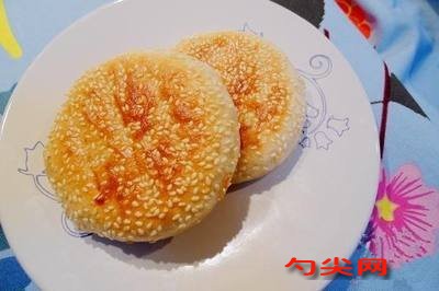 工藝:低筋面粉1斤加入加熱的豬油(或起酥油)3-5斤、食用鹽50克,炒成油酥。另外,再取中筋面粉2斤加入泡多源A型10克干拌均勻,再加入酵母20克(提前用少許溫水溶解)、溫水1斤、鹽20克、白糖200-300克,和成面團。放入醒箱35~40℃醒發(fā)30-50分鐘,揪成小面團,軋成水面皮,抹上一層油酥,撒上五香粉,卷起來,切開,兩遍收口,壓成餅。刷點蛋黃與花生油混合液,再撒點芝麻,入爐上火200℃、下火230度烘烤8-10分鐘。
