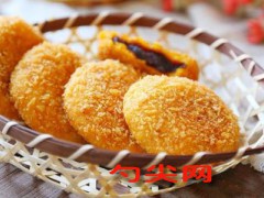 配方:南瓜500克、面粉100克、糯米粉200克、泡多源A少量、蜂蜜50克、面包糠適量、食用油適量、芝麻適量。