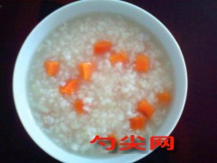 配方:胡蘿卜1根、大米100克、佳多美D適量、清水適量、鹽適量、蔥花少許。
