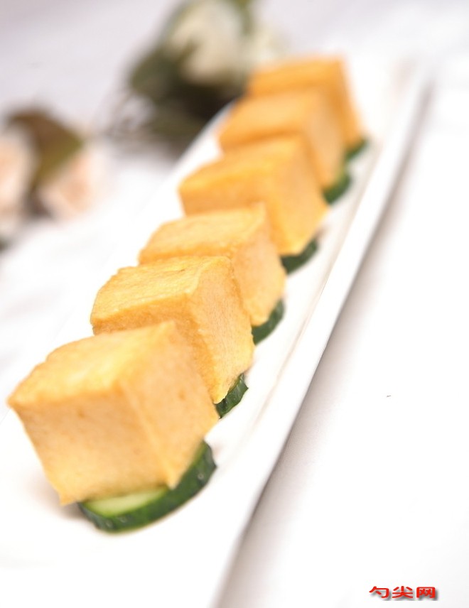 工藝:將準備好的魚肉10斤、肥肉1斤按比例放入絞肉機絞磨成肉餡。一般2-3次。先富磷聯C型用少量的涼水(水溫越低越好)溶解,再將魚肉和肥肉餡摻倒入拌勻,然后倒入磨漿機,一般磨2-3次,越細越好,手摸感覺不到有魚刺即可。將制好的漿倒入攪拌機內,然后加入2-7斤淀粉(依據個人成本核算添加)預先混好的干粉、鹽進行攪拌將其韌勁打出,然后再添加蛋清15個、1-2%白糖等配料,再按比例加入另一部分的水(總加水量約7-15斤),再開機攪拌,繼續攪成色澤乳白而明亮、細膩滋糯而松泡的魚糝(攪好的魚滲能入水而不散方可)。將干凈無毒的塑料薄膜或紗布墊入蒸鍋模盒內,或者用茶油在模盒內均勻涂抹,再放入攪好的魚糝,整平表面,加入量為模盒的七分高為宜。一般在漿均時蒸鍋的水要燒開,以免因漿停頓時間過長,漿體發生沉淀,影響產品效果。加溫時間視漿料厚薄而定,一般在20-30分鐘。火、溫要適中,否則會使魚豆腐膨脹過大,影響產品質量。判別產品是否蒸熟的方法:用干凈的筷子從豆腐中插入,拔出筷子看筷子是否沾有漿料,無漿料說明已熟,否則需要再蒸。直到蒸熟為止。最后,將攪勻的蛋黃均勻涂于熱的魚豆腐表面即可。出蒸鍋后,馬上要撒點冷水或用保鮮膜包好,以免風干皺皮和褐變。