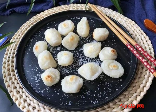 配方:糯米粉500克,筋力源Q1.2克,黑芝麻餡300克(黑芝麻粉240克,糖60克),花生油適量。