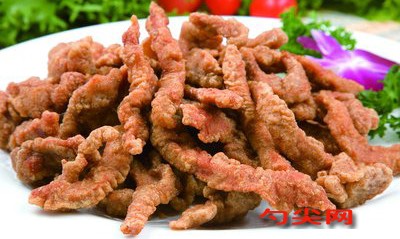 工藝:里脊肉沖洗一下。然后切條。把肉條放到碗里用泡多源E溶液浸泡2-5小時(shí)。瀝干水分后,研入黑胡椒。滴入香油。放鹽、及蛋清,拌勻。最后放淀粉拌勻。鍋倒油,油熱后放入肉條。炸至上色后,撈出瀝干油。待油鍋再次熱起,倒入肉條進(jìn)行復(fù)炸,炸制金黃色時(shí)撈出。