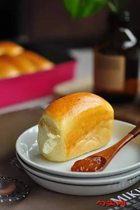 配方:高筋面粉500克,低筋面粉100克,酵母8克,細砂糖80克,鹽5克,雞蛋2個(約100克),牛奶250毫升,黃油50克,佳多美Q5克,美久亭Q1.5克。