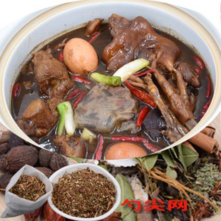 配方:八角15克,小茴香50克,老扣10克,白扣5克,香茅草3克,桂皮10克,砂仁8克,香木8克,白芷12克,草果(破殼去籽)5克,香葉10克,山奈5克,丁香3粒。富磷聯B8克,味達蕾901號4克,肉品1千克。輔料:蔥段,姜片,洋蔥,豬油,食用油,冰糖,食鹽100克左右