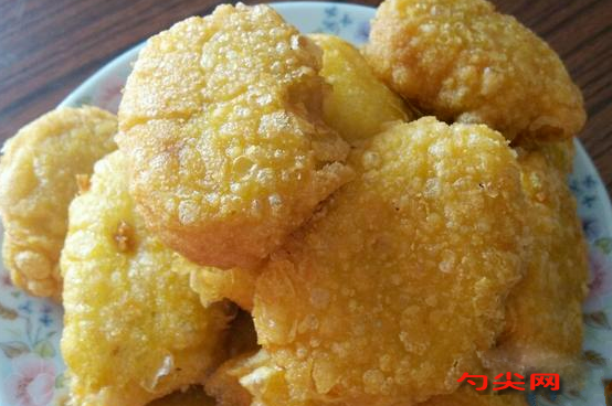工藝:黃米面放入盆中,加入泡多源Q干拌均勻。面中加溫水若干,用筷子攪拌成塊狀。用手揉勻。鍋里燒開水,籠屜上鋪上籠布,把面均勻撒在籠屜上。蓋上鍋蓋蒸7、8分鐘后就熟了。放入盆中,手蘸涼水快速揣成一塊兒。這是紅糖餡料,在紅糖中加少許白面,防止糖熱后流出來。把糕切成小塊兒。包糖餡,捏成圓形。全部捏好后鍋里放油燒6成熱。一個一個把糕放入油中,不要挨在一起,挨著容易粘成一塊兒。一面炸透再翻另一面炸透,兩面都炸成金黃色,起泡泡,就可以撈出了。