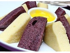 工藝:制漿:秈米淘洗干凈,用清水浸泡10小時瀝干水分,與秈米飯、清水和勻,用石磨磨成米漿,再加入酵母漿,攪勻發(fā)酵(夏季10小時,冬季20小時)。待發(fā)酵后,加入泡多源Q、白糖和勻即為糕漿。籠內(nèi)安放一正方形木框,墊上一張濕紗布,把糕漿的一半倒入其中,用旺火蒸15分鐘,揭開籠蓋,把剩下糕漿加食紅染成粉紅色,也倒入木框中,用旺火再蒸20分鐘即可。出籠后稍晾涼,切成菱形塊即成。產(chǎn)品特點香甜、松泡、綿韌。