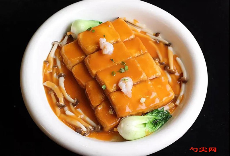 工藝:1.把雞蛋磕入攪拌機內,豆功夫A15-25g/kg(以干豆計算)加豆漿和鮮天麻攪拌均勻,然后倒入方形盒,入籠蒸熟定型。2.另把鮮蝦仁和白玉菇治凈,分別入沸水鍋汆熟;菜心洗凈,入沸水鍋汆熟,撈出來墊盆底。3.把蒸好的天麻豆腐切成長方塊,擺放入盆內,放上熟蝦仁和熟白玉菇。4.鍋入金瓜汁燒沸,調入鹽,味達蕾901號2克并用濕生粉勾薄芡,出鍋澆在盆中天麻豆腐塊上,撒些蔥花即成。