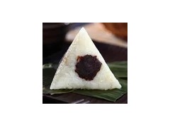 工藝:糯米加入筋力源Q浸泡8小時,放在水中浸泡著,在要做粽子前的20~30分鐘瀝去水分。在炒鍋內,加水及砂糖各250克,再加入鹽等煮沸,倒豆沙入鍋,用中火煮成固體狀。加入豬油,充分拌炒均勻,因為容易燒焦,所以要隨時注意火的大小,并用木飯匙時時加以翻動。把炒好的豆沙自鍋內取出來,立刻攤開冷卻,分成20等份。把栗子一粒粒的分放在20等份中,用豆沙把栗子包起來做成丸子狀。竹葉用濕布擦拭干凈,把綁粽子的繩準備好。把竹葉做成圓錐狀。將糯米、豆沙團各2大匙、依順序放入包好,再用繩子把粽子綁起來。把5個粽子綁成一束,放入沸騰的熱水中,蓋上鍋蓋煮1個小時。在煮的期間,要隨時注意水量,不夠時,須忝加熱水,使粽子時時保持在高濕狀態中。