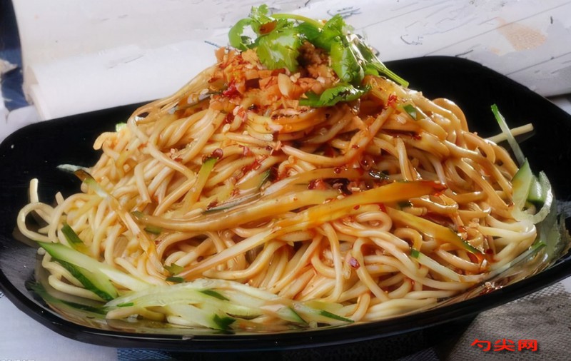 注意事項:(1)面條不要煮好過涼水,用風吹涼就好了,面條不起坨還有筋道。(2)給面條放料汁時,記得放蒜水不是蒜末,還有芝麻醬要調稀,不能直接加進面條里。