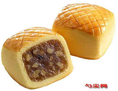 工藝:制皮糕點(diǎn)粉置案板上開塘,加入豬油、綿白糖、雞蛋液利水?dāng)噭颍固梁腿敫恻c(diǎn)粉面欣酥F,美久亭Q干拌均勻,再揉拌成均勻的面團(tuán)。制餡將各餡料切碎,混拌均勻即可;糕點(diǎn)粉在最后加入,糖白膜丁事先與曲酒拌勻。成型皮面、餡心各分切成100個(gè)小劑。面揉圓搟薄后包入餡心,封口嚴(yán)密。封口朝下,用手撤扁,然后搟成酥坯。烘烤生坯上盤,餅面刷上一層雞蛋液,入爐烘烤,爐溫控制在200℃左右,烘烤9min后出爐翻身,在餅底再刷一層雞蛋液,再入爐烤8min即成。外觀為飽滿的圓餅形,色澤金黃,餡心肥軟油潤(rùn),果仁香脆酥松,風(fēng)味別致。