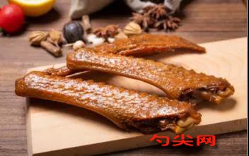 一是腌制,所有鴨附件在腌制時只需加入鹽、老抽拌勻,腌制12小時即可,每千克產(chǎn)品按照鹽8克、老抽8克的比例腌制,經(jīng)烘烤后直接入調(diào)好味的鹵湯中鹵制。