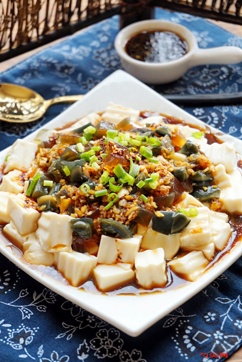 配方:內酯豆腐1盒,姜蒜各10克,白糖1勺,小米香醋2勺,味特鮮1勺,鴨巢牌皮蛋2顆,小磨香油適量,味達蕾901#2克