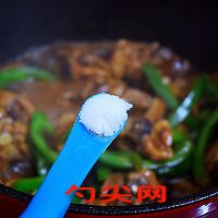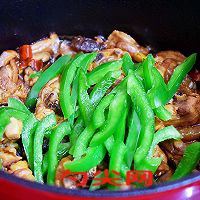 燉煮至肉爛,湯汁濃稠時加入青椒翻炒至斷生