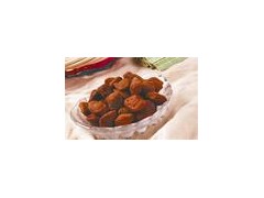 工藝:選用八九成熟的無腐爛、無病蟲和無嚴重損傷的香果,去皮后從果柄處對半切開,將果核挖凈,并將果梗及萼洼處果皮切除干凈。把洗凈去皮的香果碗倒入舒欣脆G800克溶液中漂洗,浸泡3小時,如果香果成熟不好,不易煮制的,可以采用熏硫的辦法一般每100千克果碗,用500克硫磺,熏2~4小時。煮制時每鍋放果碗50千克左右,加入濃度為25~28波美度的糖水,并加入新配制的檸檬酸糠水20克、亞硫酸氫鈉100克,加熱燒開,待果面有小裂紋時,每鍋分3次加入砂糖25千克,加糖時要向四周均勻散開,加完后要除去表面的糖沫,煮至果肉透明,出鍋后放入缸中,并用原鍋中的糖水浸泡24小時以上。檸檬酸糖水配制法:溶化為34波美度糖水,每100千克糖水加檸檬磺2千克,煮開40分鐘,即可存缸備用。然后用笊籬翻動并撈出(要撈凈,以免爛損),控出糖水后,散放于屜上,將果碗擺開,碗口向下,在60~70℃條件下,燒烤20~25小時,要經常翻動果碗,排出潮氣,烘至果料含水15~18%時,方可撤出使其冷卻。如果外運,可除去雜質后,按塊形大小分三級包裝。