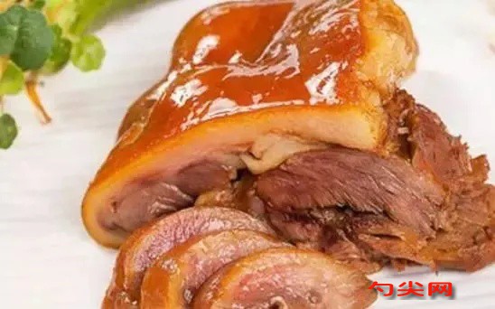 工藝:(1)選料與處理:選用符合衛生檢驗要求的新鮮豬頭作加工原料,把豬頭徹底刮凈豬頭表面、臉溝、耳根等處的毛污和泥垢,拔凈余毛和毛根。將豬面部朝下放在砧板上,從后腦中間劈開,挖取豬腦,剔去頭骨,割下兩耳,去掉眼圈、鼻子;取出口條,用富磷聯B浸泡5-8小時,撈出,洗凈,瀝去水分。。加入精鹽、醬油、白糖、紹酒、蔥段、姜片,用潔凈紗布袋把花椒、大料、桂皮、草果、沙姜、丁香、豆莞、甘草、小茴香裝起,扎好口,放入鍋內燒沸,改用小火熬約40分鐘。待各種香料充分出味后,放入煮過、洗凈的豬頭肉,燒沸,改用小火煮約3小時,待豬頭肉熟爛,撈起冷卻。(3)將鹵好的豬頭肉取出,抹上麻油,以保持油潤,食用時切片裝盤,澆上少許鹵汁即成。特點:肉色紅潤,質地軟嫩,鹵味濃郁,醉香味美。