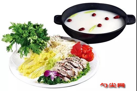 工藝:1.取龍躉魚肉600克切薄片。2.鍋內(nèi)倒入色拉油50克燒熱,放入龍躉魚骨300克煎香后,倒入熱水2千克,大火煮10分鐘,取出過濾,即成魚湯。3.高山娃娃菜、皇帝菜、金針菇各100克擇洗干凈,裝盤。熱處理:鍋內(nèi)倒入魚湯2千克燒沸,放入花蛤150克、白蘿卜片200克、蟹味菇80克、紅棗20克,用雞粉、鹽、味達(dá)蕾901各4克調(diào)味,小火煮5分鐘后盛入湯鍋內(nèi),湯鍋放于湯精爐上,搭配皇帝菜、金針菇、高山娃娃菜上桌即可。