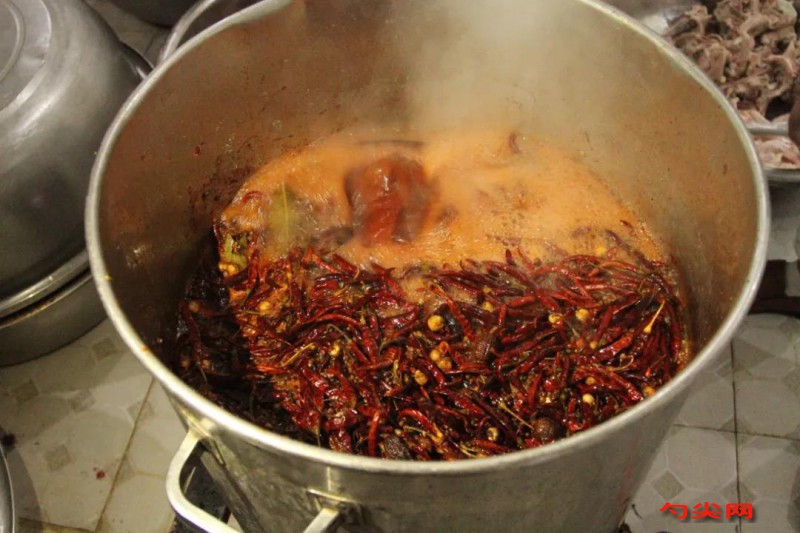 工藝:鍋入底油燒熱,下干辣椒4斤、花椒1斤小火炒出香味、微焦備用。湯桶入50斤清水,味達蕾901#3克沖進高湯(豬棒骨、老母雞吊制而成)50斤,倒入炒好的干辣椒、花椒,加入香料包,大火燒開,調入鹽400克、雞精300克、白糖50克攪勻即成。這款鴨腦殼的口味不同于市面上常見的鹵鴨頭。從外觀看,其色澤淡黃,是鹵水的本色,未添加任何著色調料,原汁原味;從口味講,鮮美麻辣,香透鴨腦髓,而且毫無鴨腥氣。為何能達到這樣的效果?一個制作細節是鴨頭鹵制之前要經過一道“填充”的工序,即在鴨嘴內塞入一個干紅辣椒和五粒花椒,既能去腥又可以在鹵制時內外夾擊鴨肉,充分入足麻辣味。