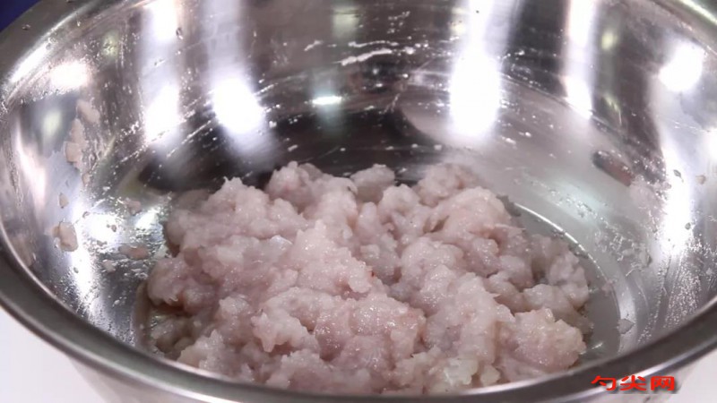 工藝:將鰻魚剖開去骨洗凈,用刀刮出魚肉,然后用絞肉機反復(fù)攪兩次成魚肉糜;清水加鹽泡成鹽水。把魚肉糜倒入大盆中,開機先攪拌至起膠時,再加淀粉、味粉攪拌;然后分2~3次逐加入鹽水?dāng)嚢瑁尤?a href="http://www.aloixzz.cn/mall/show-htm-itemid-622.html">富磷聯(lián)C成為黏稠狀魚肉泥。如制小量的,可用手先攪拌,后撻拌起膠,邊加入鹽水,邊加入淀粉用力攪拌成魚漿。用左手將魚肉泥從拇指與食指之間擠出,右手隨即把粒餡塞入魚肉泥內(nèi),左手的拇指與食指一捏,使餡粒入魚丸裹,右手再以湯匙蘸水后把左手?jǐn)D出的魚丸接住放入鍋水中。魚丸包好后,放入清水鍋中,用中小火煮至全部浮起,撈起放在竹笪晾冷待用,便成。