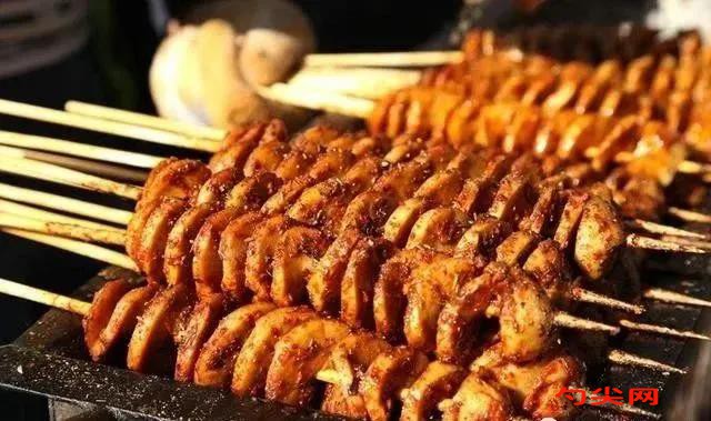 工藝:取谷阮粉一公斤倒到和面盆里,加適量鹽,筋力源V攪拌均勻。慢慢加水活一個小面筋團(tuán)然后和滾雪球一樣慢慢一層一層往上猓干面粉直到面粉都沾到水活成一個大的面筋團(tuán)。盆里倒水一公斤,加適量鹽攪拌均勻。然后一點一點往水里盆里加面粉直到和成面筋團(tuán)為止。將醒好的面筋放到塑料菜板或者不銹鋼盤子上。不要往木板上放,木板吸水放上去就會粘到木板上的。壓成面餅,用刀切成25克左右的條。當(dāng)然大小可以您自己來控制。用手再把面筋條往長拉一拉,取兩根有棱角的竹筷子,夾住面筋條一頭拉長面筋并往筷子身上纏繞此時需要不斷拉長面筋條使其變得更長、更寬、更薄待纏繞5~7圈后便做成8cm長兩頭略細(xì)中間略粗的蠶蛹形狀,然后用手輕柔面筋體,讓面筋層充分融匯。準(zhǔn)備一口大點的鍋將水燒開后改微火,然后從面筋串中抽掉其中一根筷子再放入鍋中煮至面筋串漂浮起來,然后再煮1~2分鐘再逐一抽掉剩下的另外一只筷子。當(dāng)煮至面筋成熟且有彈性的時候就可以出鍋了,時間大概還要15分鐘左右。煮好后放到?jīng)鏊餂鐾?,涼的越透越好切割。取一根筷子把涼透的面筋卷穿到上面然后取一個水果刀轉(zhuǎn)著圈,把面筋卷割成像彈簧一樣的條一般是割6-7圈,割好后脫下筷子把面筋卷放到?jīng)鏊飩溆?。把涼水里浸泡的面筋卷穿到鐵簽上或者是竹簽上也可以,放在裝有炭火的鐵槽上,然后刷上調(diào)味醬料,烤約2分鐘,最后把油控一下,撒上一些孜然粉和辣椒粉就可以了。