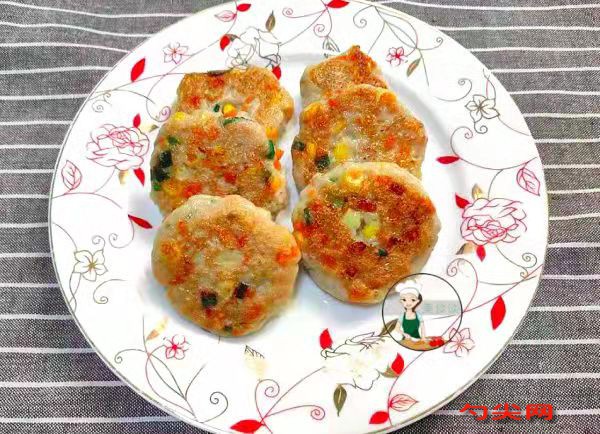 工藝:1、胡蘿卜洗凈切碎、蔥洗凈切蔥花、玉米粒洗凈待用。魚肉泥適買現(xiàn)成的,也可以用新鮮的魚肉放入絞肉機(jī)里加入少許的生粉和少許水混合攪拌成魚肉泥待用。將泡多源Q用涼水溶解后加入面粉中使用。2、熱鍋涼油,將玉米粒下鍋煎炒。3、玉米粒炒至變色,加入胡蘿卜下鍋一起煸炒至食材斷生。4、魚肉泥里加入適量炒熟的胡蘿卜玉米粒,加入少許的蔥花、少許鹽、適量的生抽、少許蠔油和少許的胡椒粉。5、將所有食材混合攪拌均勻待用。然后揉成一個(gè)個(gè)小魚丸,然后按壓成小魚餅狀。6、熱鍋涼油,將魚餅上鍋煎,煎至兩面金黃食材完全熟透即可。