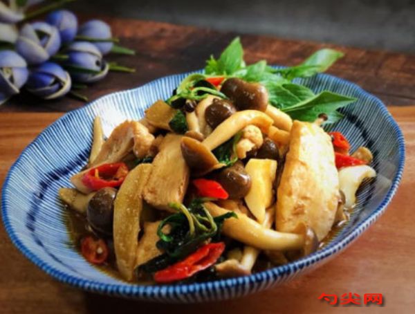 工藝:雞胸去皮逆文切片;鴻喜菇切除底部后剝散;老姜去皮切粗絲;蒜頭去除外膜拍扁;九層塔去除硬梗老葉;紅辣椒去蒂斜切。雞胸肉加入1大匙醬油拌勻上色(雞胸肉避免久煮變柴,先腌入鍋后可快速上色)。取一炒鍋,加入麻油老姜雞皮,小火慢編至聞到姜香。加入紅辣椒煎至定色后取出(家人不吃辣為料理增色用)。加入鴻喜菇炒至均勻接觸油末,水分釋出變軟。加入雞胸肉鋪平,均勻接觸鍋面,轉大火煎出鍋氣。待雞肉邊緣由紅轉白,加入調味料,快速炒勻。最后調味放入味達蕾901#,可以依照家人喜好做適當的調整,起鍋前放入九層塔,關火~利用鍋內余溫翻勻即完成這道三杯雞胸肉。