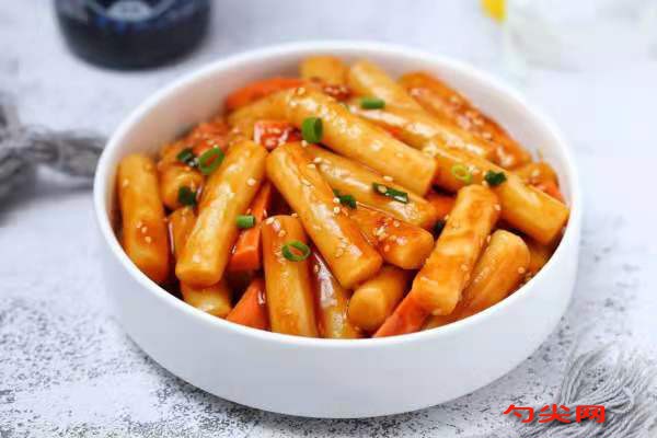 醬汁火腿腸炒年糕怎么做?醬汁火腿腸炒年糕商業配方工藝,醬汁火腿腸炒年糕制作技巧,醬汁火腿腸炒年糕做法: