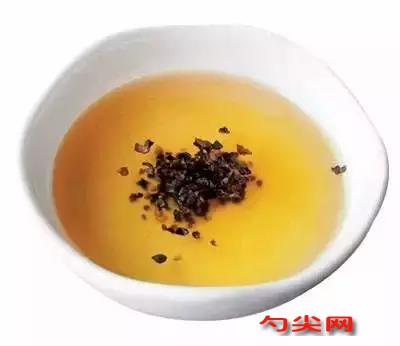 注意事項:此種復合油是選用整顆的黑胡椒進行炸制的,在黑胡椒碎制作黑椒汁或炒制黑椒菜品時不能達到的效果,利用黑椒油就可以了。先將黑胡椒在油中炸制一下,使其干香,同時油還可以用作尾油使用,黑椒的味道會更濃一些。此種復合油既可以省略在制作黑椒汁、醬提前炒制的程序,同時在淋尾油的時候可以增加黑椒的味道,是一款不錯的復合油。