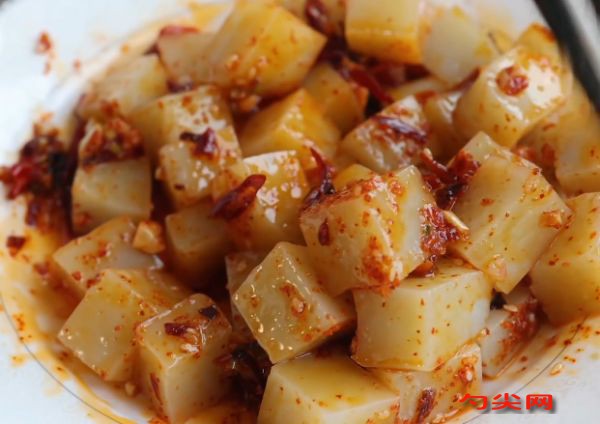 注意事項:綠豆淀粉與水的比例要適當,一般為一碗淀粉配六碗水,以確保涼粉的凝固效果和口感。在煮制綠豆淀粉糊時,需不停攪拌以防止糊鍋或產生面疙瘩,影響涼粉的細膩口感。煮制至半透明粘稠狀時,需轉小火繼續熬煮并攪拌,直至達到適宜的流動阻力。煮好的綠豆涼粉需自然冷卻,避免使用冷水沖涼,以免影響其凝固狀態和口感。冷卻后可用刀切或用專業工具刮成條狀,以便食用。